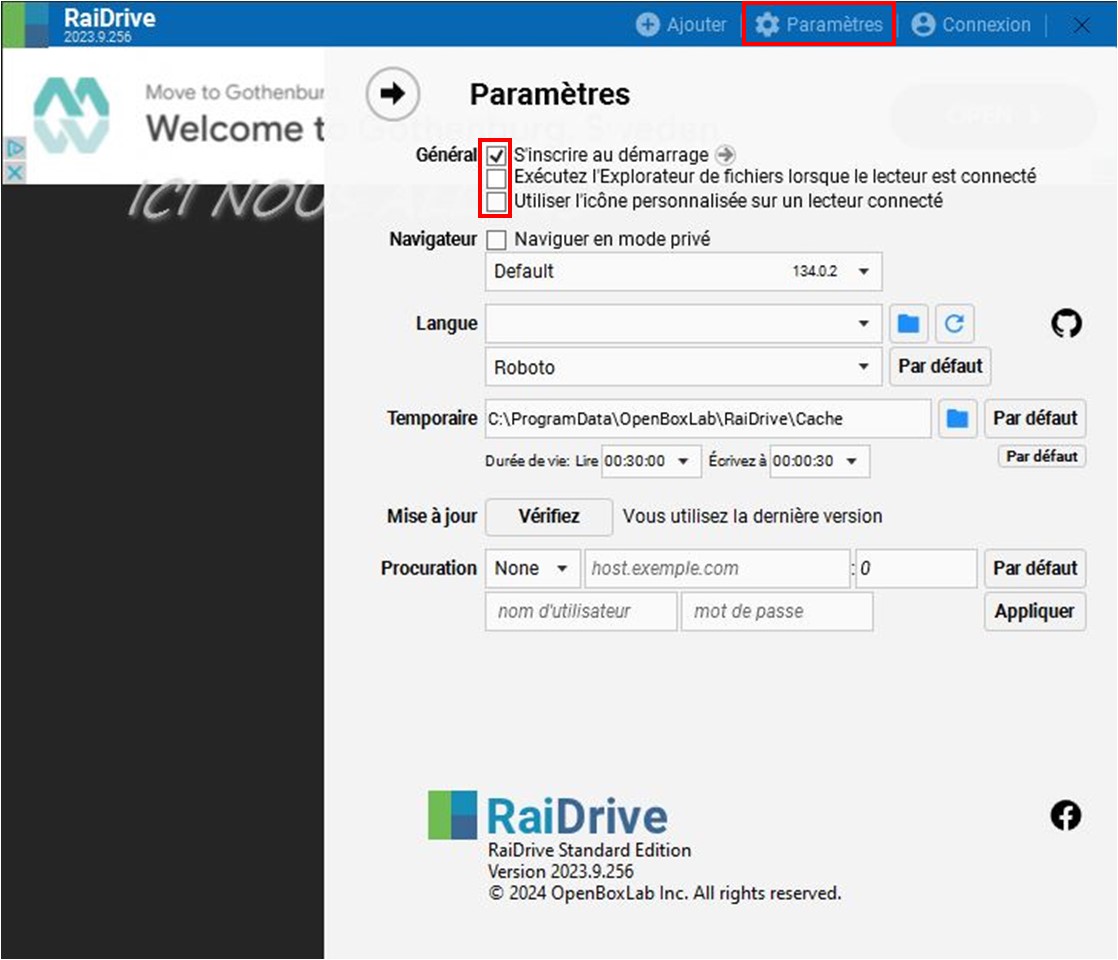 - Cochez la case « S’inscrire au démarrage » afin que RaiDrive se lance automatiquement avec Windows