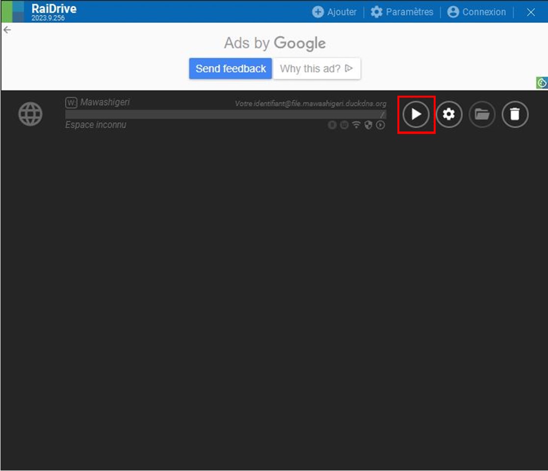 - Fermer la fenêtre de RaiDrive en cliquant X en haut à droite