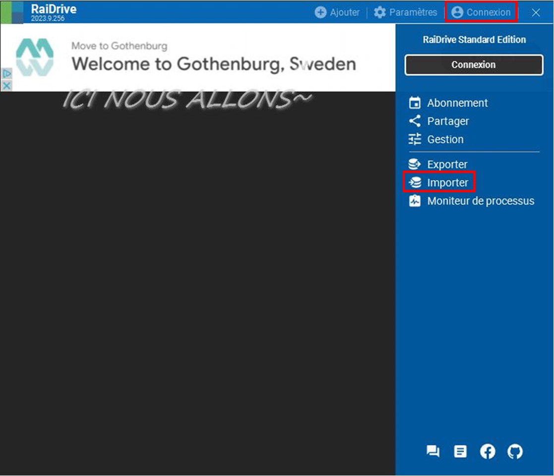 - Sélectionner le fichier RaiDrive.dat précédemment téléchargé et cliquez sur Ouvrir