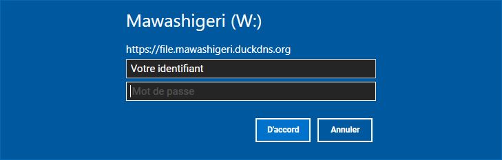 - Entrez le mot de passe Mawashi-Geri puis cliquez sur D’accord sans cochez la case « Effacer la connexion existante »