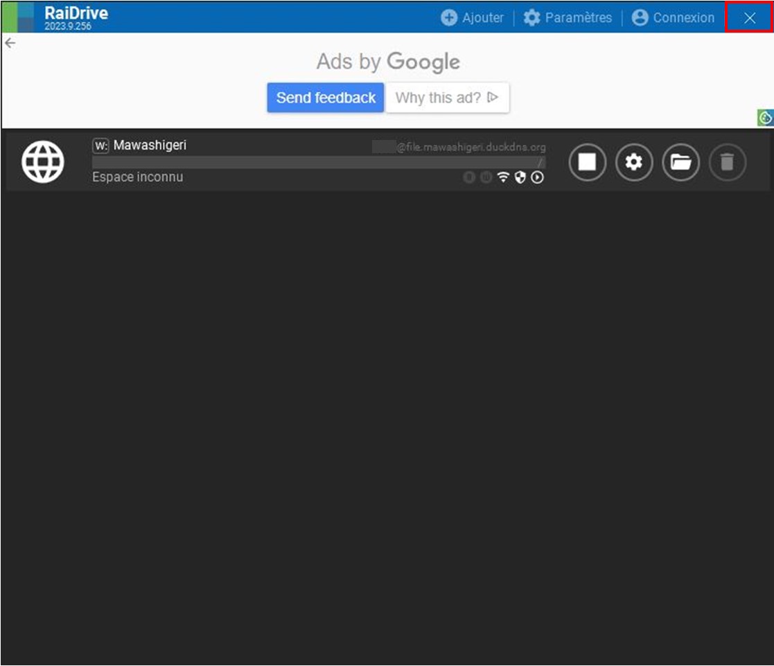 - Fermer la fenêtre de RaiDrive en cliquant X en haut à droite